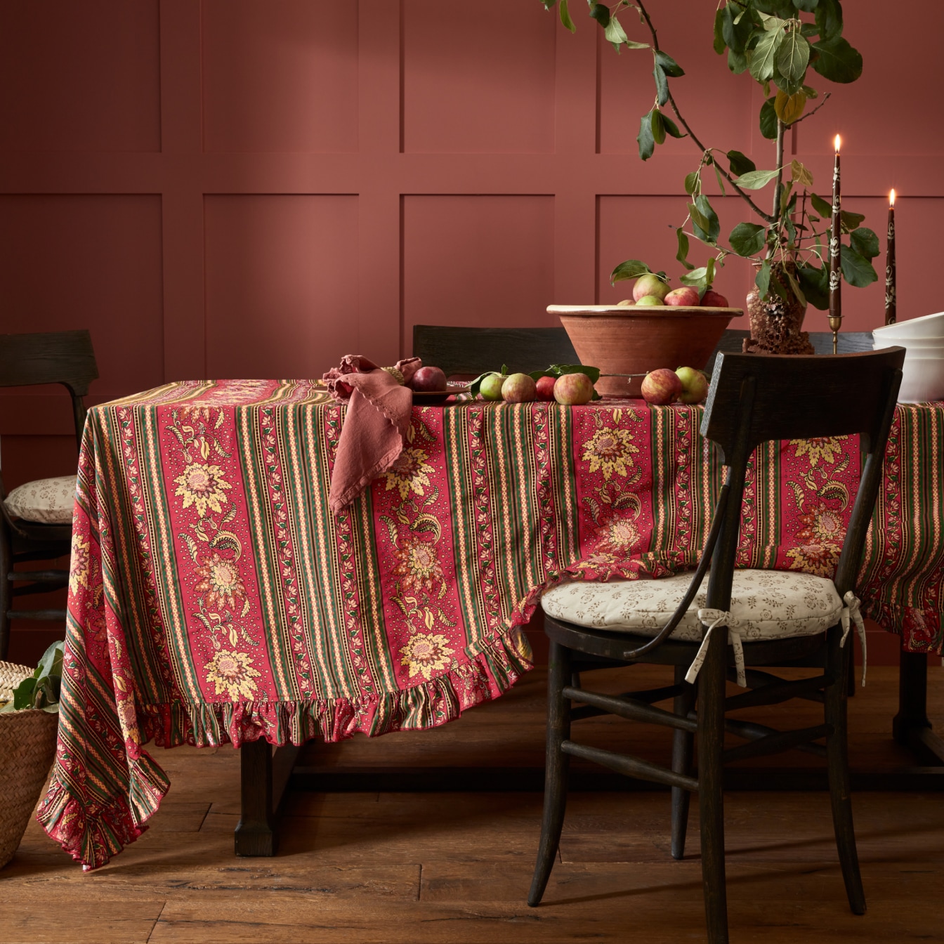 Red Floral Farmhouse Dining Room